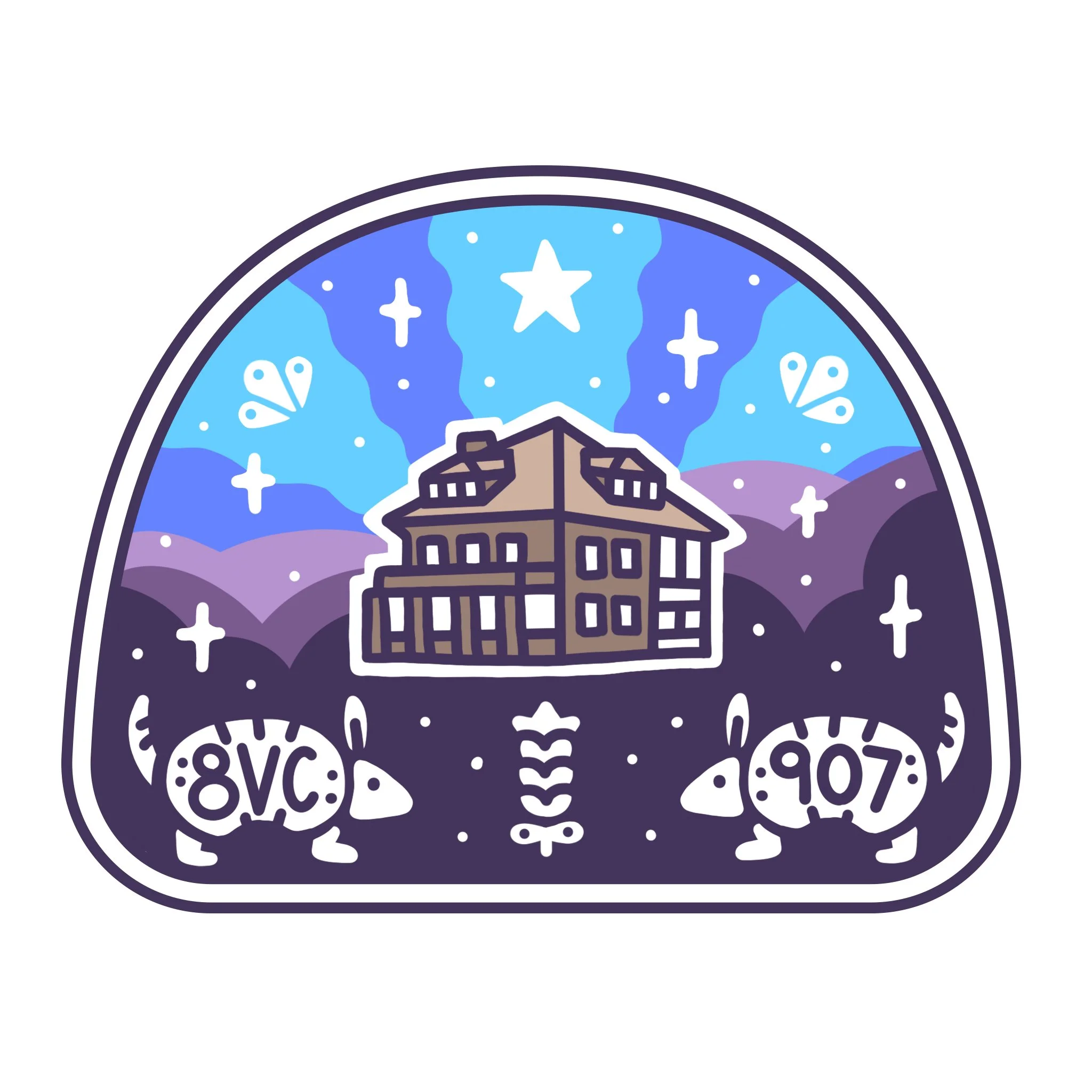 The artwork features 8VC’s office on South Congress, Texas symbols (armadillos with the street number and 8VC on them, a bluebonnet and a lone star) and a violet crown made of clouds that give the scene a dreamy, spacey feeling.